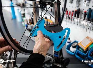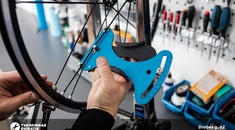 Ratų tiesinimas ir taisymas – mes tiesiname ratus, keičiame jų detales ir atliekame balansavimą, kad dviratis važiuotų sklandžiai ir saugiai.